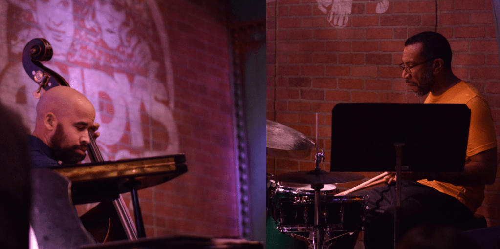 Christian Dilingham (left, b) and Marcus Evans (right, d). Andy’s, Chicago, 5/08/23. Photo by Dominic Guanzon.