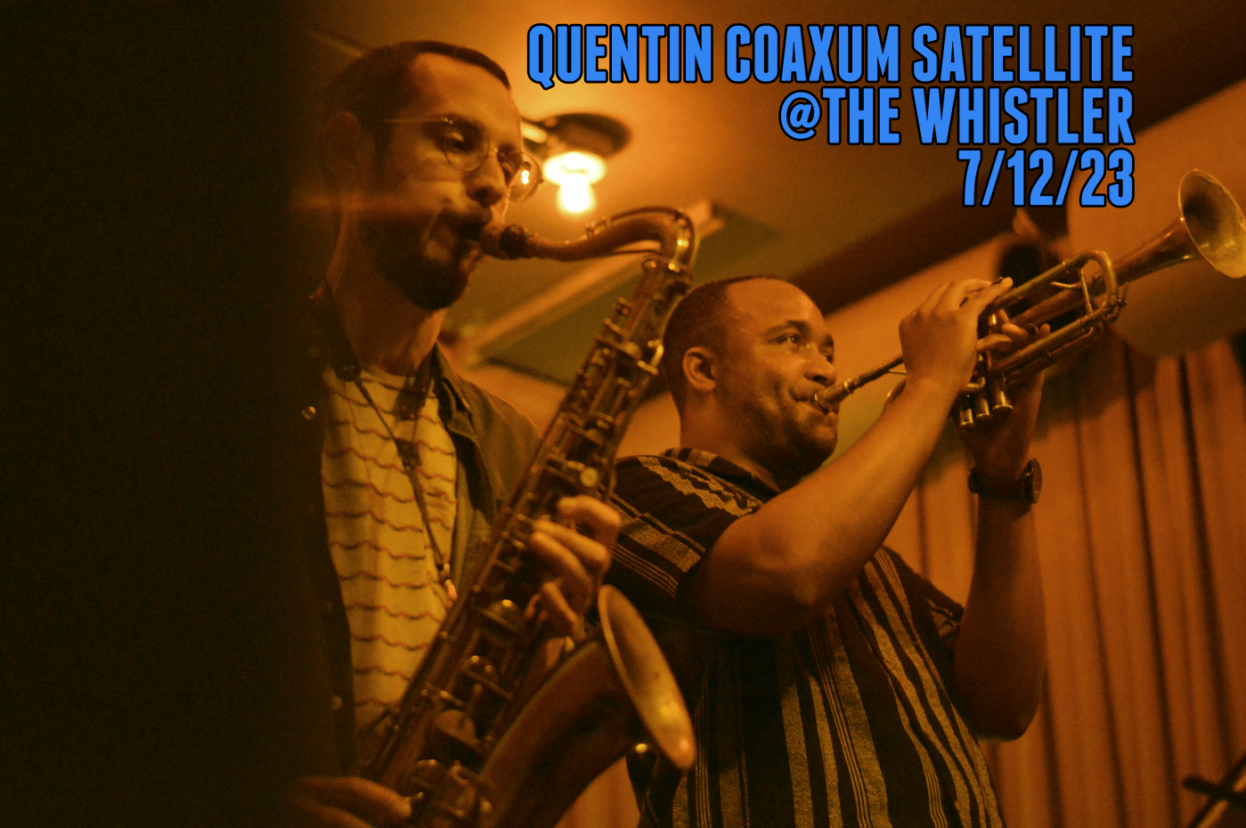 Taking to The Whistler’s red-tinged stage, Coaxum debuted his latest project: Satellite, a group containing some of Chicago’s core corps of jazz musicians he has both taught and learned from. He has called his drummer Marcus Evans “one of my Marvel action figure cards when I was in high school,” in reference to Evans’ compositions influencing him. Conversely, Coaxum told the story of how his bassist Micah Collier was a student in his Music Theory I class about 10 years ago. As the former tells it, he was going over basic scales, when Collier gave him “dirty looks,” and told him “Mr. Quentin I already know all this!”