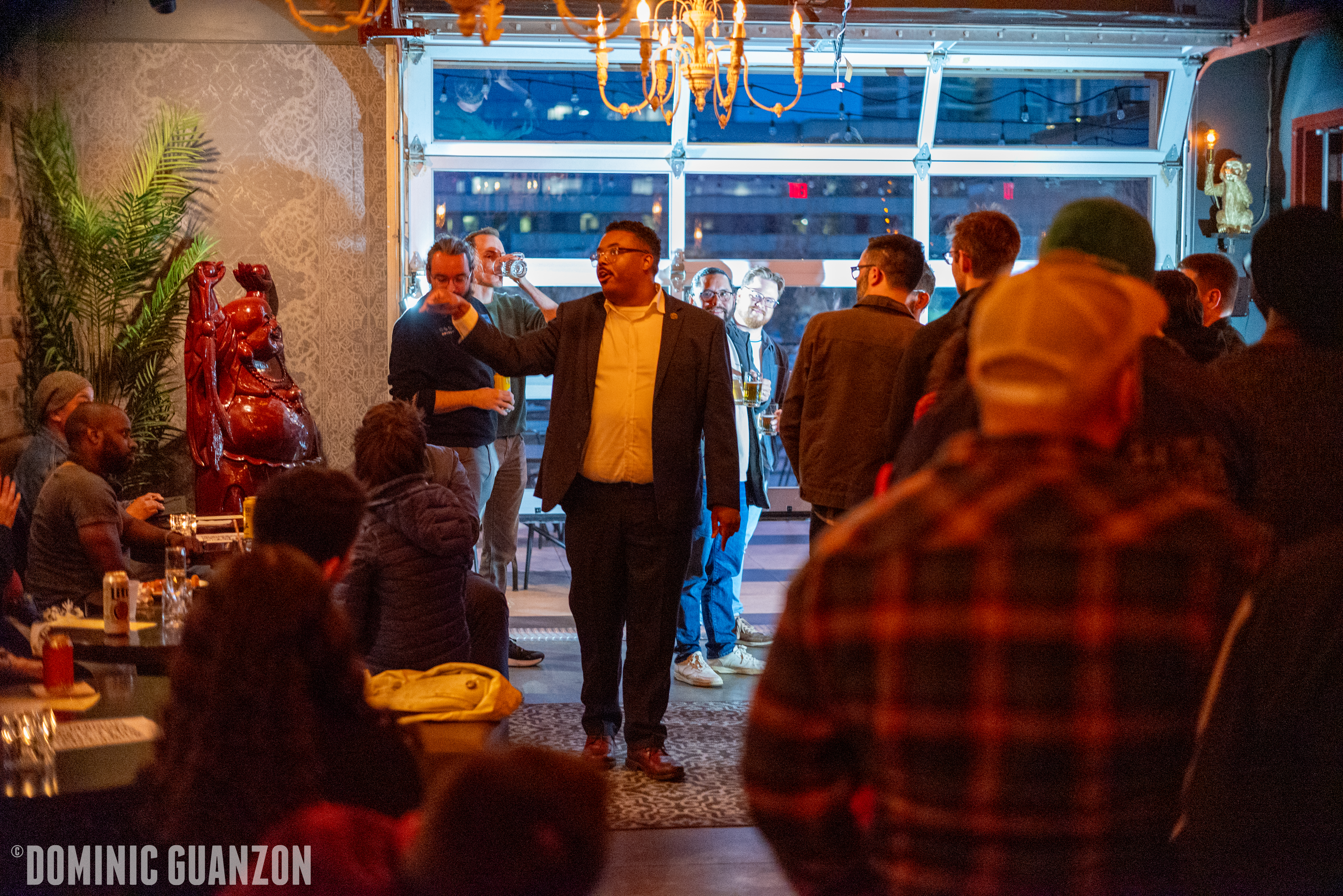 During her speech, Abughazaleh [AH-boo-ga-ZAH-lay] announced to the room her five-day-old campaign had amassed over $300k “just with grassroots donors,” averaging “about $38” per donation. This, in addition to several dozen boxes of period hygiene products, asked by the campaign in lieu of a monetary entrance fee, for The Period Collective non-profit. “We’ve also gotten 1,000 people to volunteer. It’s insane to me…I’m so thrilled.”