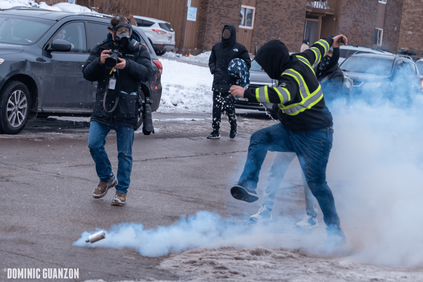 Protesters worked quickly to cover as many canisters as they could with snow, as others pivoted to providing aid to the gas victims.